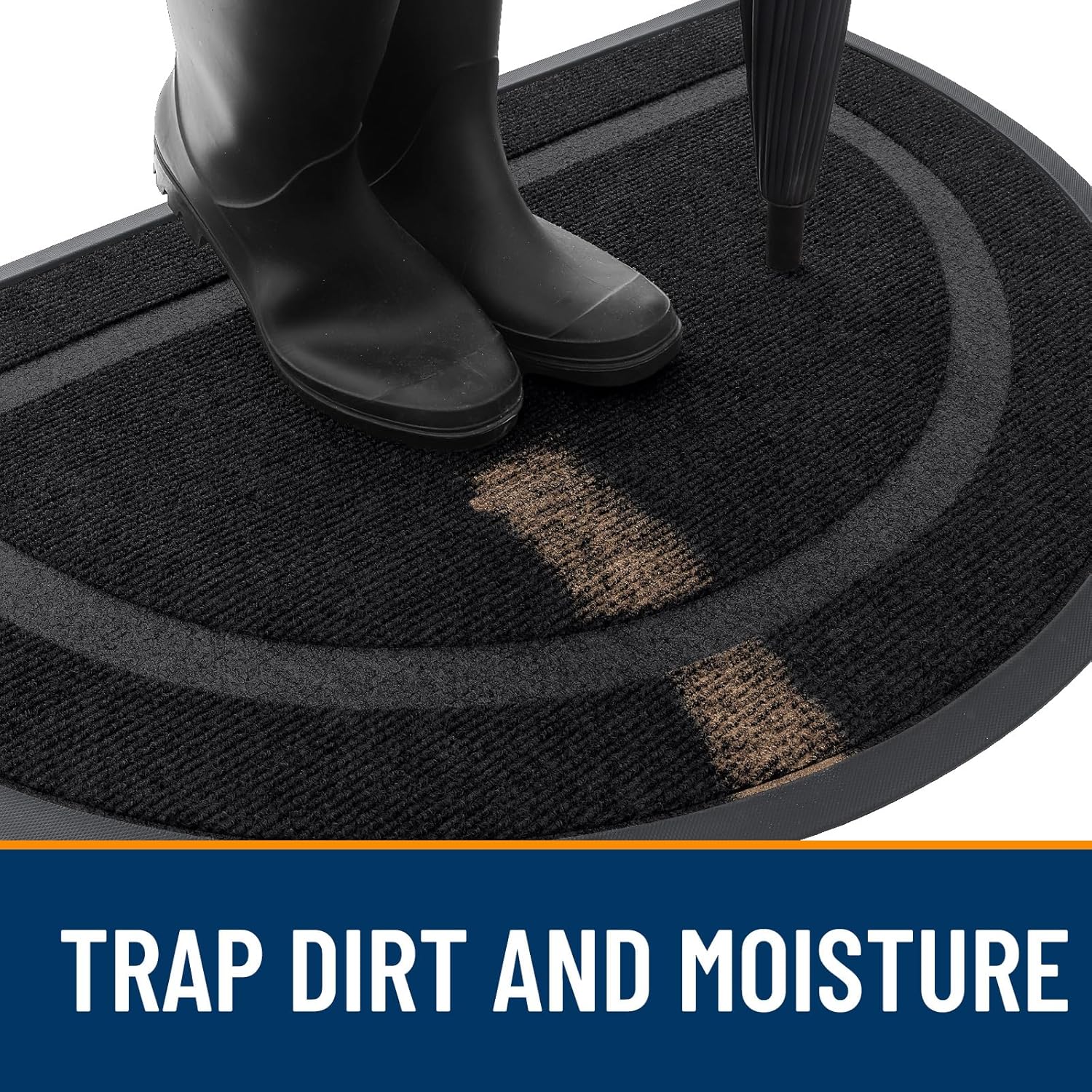 OLANLY Half Circle Door Mat Indoor Outdoor Entrance Welcome, Waterproof All-Season, All-Weather Doormat, Sturdy Natural Rubber, Low Profile, Easy Clean Patio Porch Entryway Mat, 71x47, Black