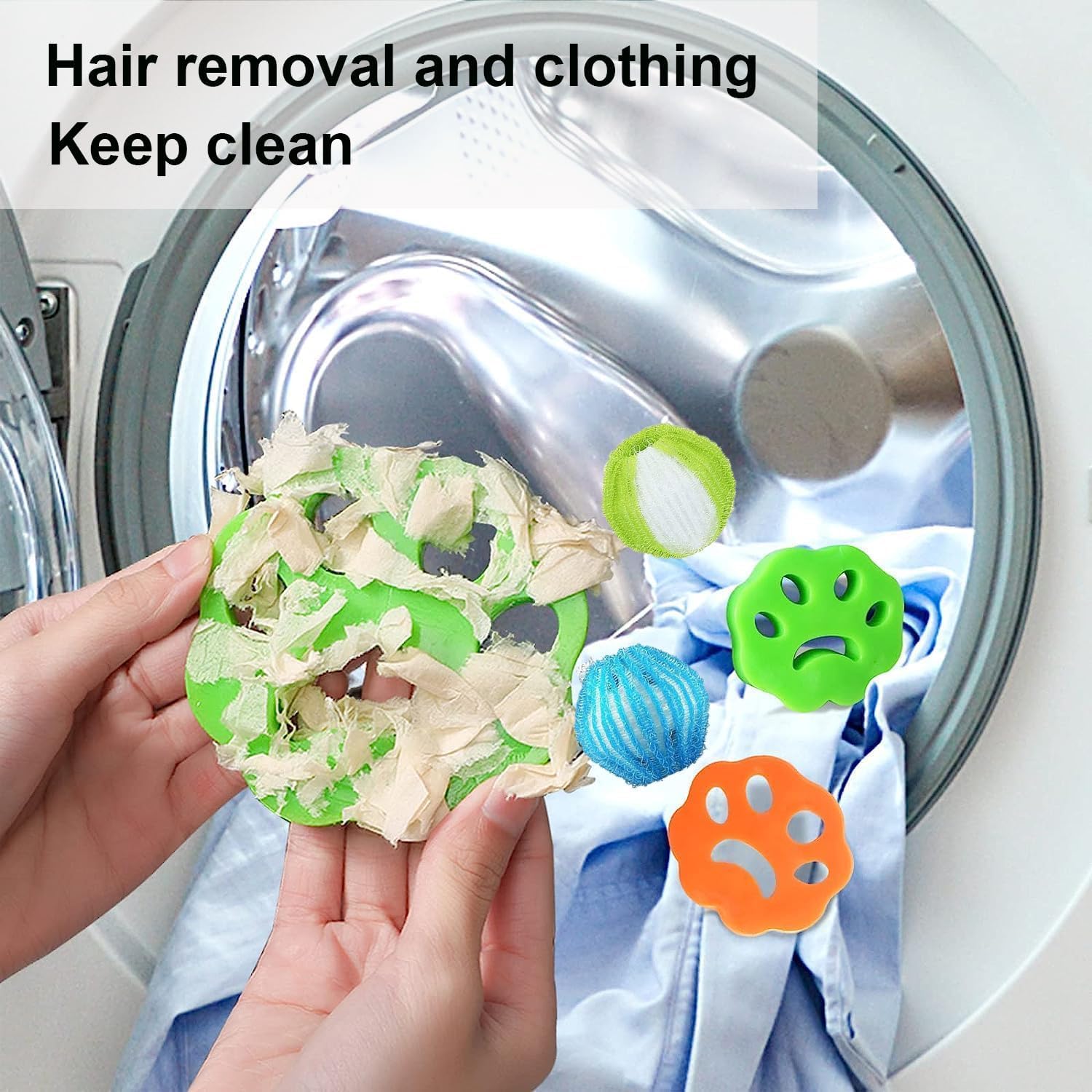 - 【Hair removal helper】 Say goodbye to manually removing pet hair from clothes, just put a laundry ball and laundry hair catcher in the washing machine, and the microfiber on the surface of the laundry ball easily collects pet hair, saving time and labor. Pet hair catcher washing machine acts as a barrier between garments during the washing process, reducing the problem of tangles.
