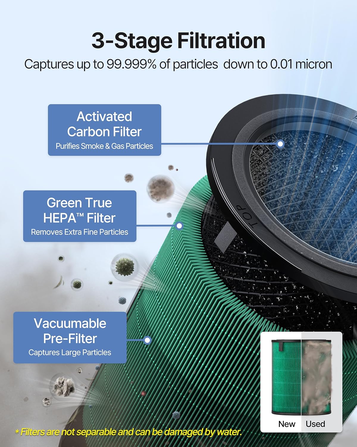 - : Filter Type True HEPA, Carbon Filter, Pre-Filter