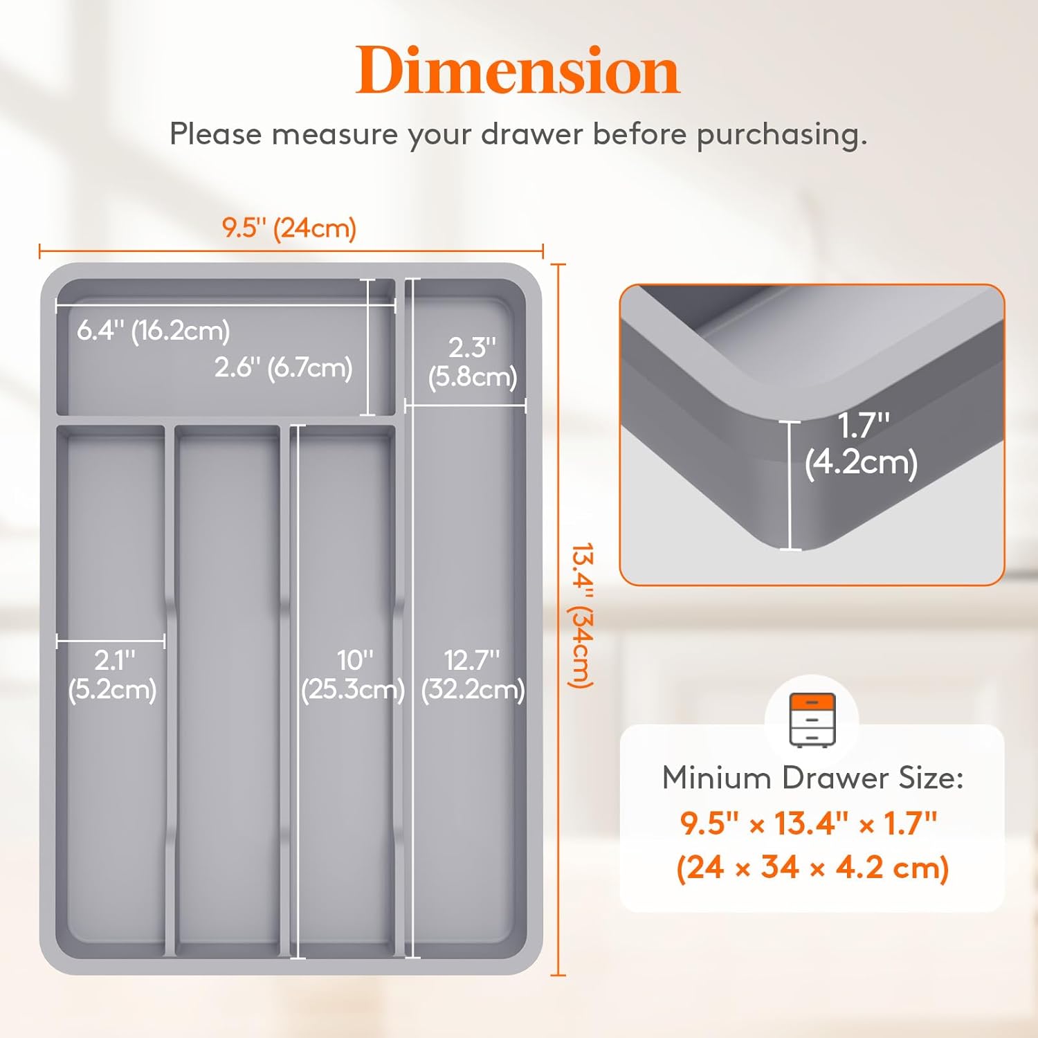 - Fit Most Drawers: Measuring 9.5 Ă— 13.4 Ă— 1.7 inches (24 Ă— 34 Ă— 4.2 cm), the Lifewit silverware organizer easily fits in most standard and small-sized drawers. This universal utensil drawer organizer helps you maximize storage space efficiently while keeping your utensils neatly organized and easily accessible