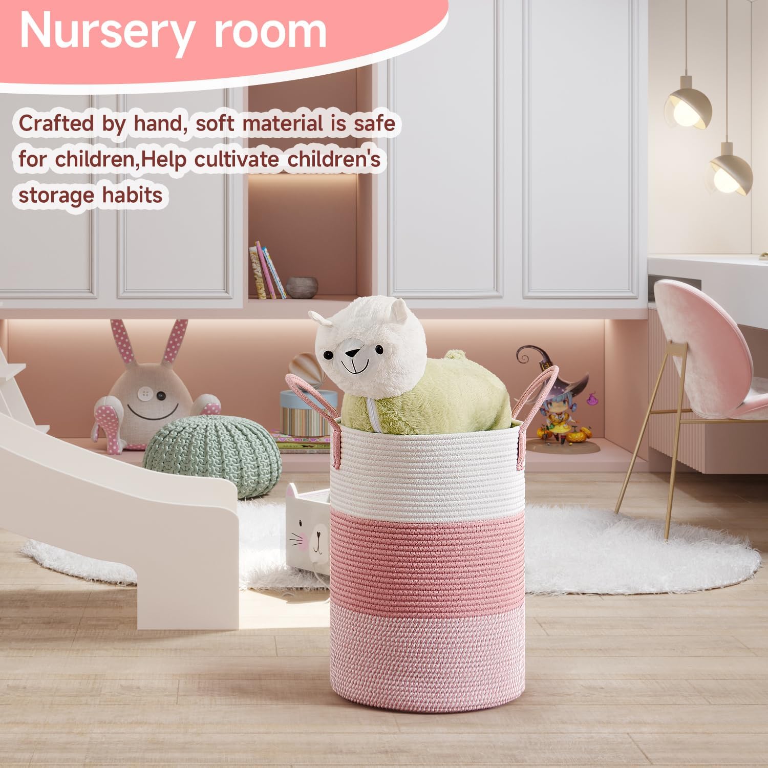 - Nursery Organization Essential: Keep baby items tidy with this natural cotton storage basket. Designed for nursery room decor, it safely holds diapers, toys, or linens while complementing soft, cozy themes.