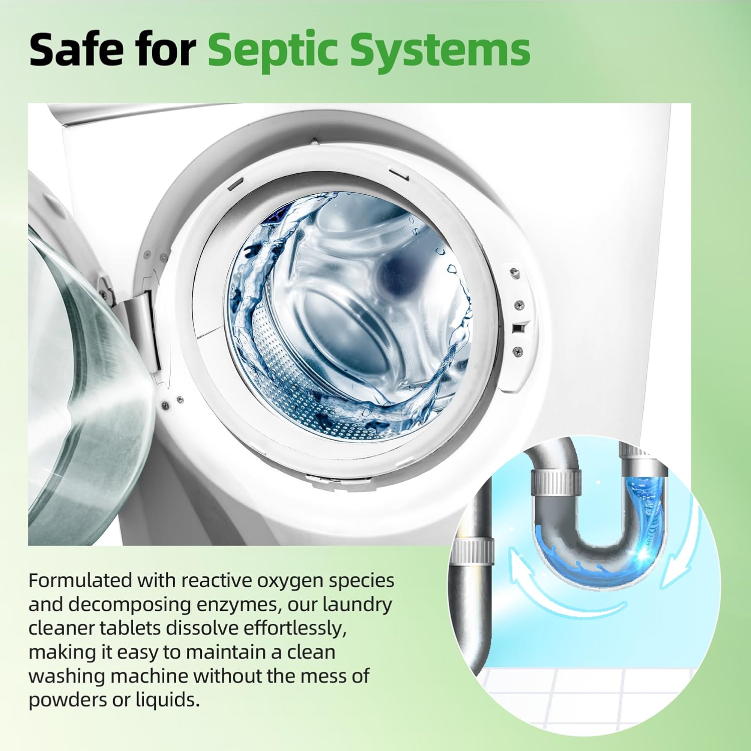 - Safe for Septic Systems: Formulated with reactive oxygen species and decomposing enzymes, our washing machine cleaning tablets dissolve effortlessly, making it easy to maintain a clean washing machine without the mess of powders or liquids
