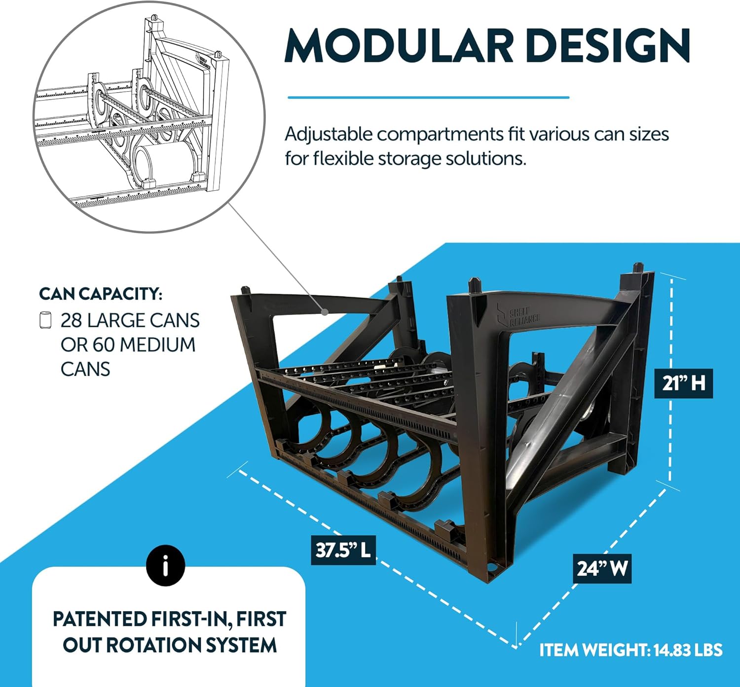 - DURABLE & STURDY BUILD - Holding up to 100 pounds, this sturdy can food storage organizer is made for heavy-duty storage. Whether itβs soups, sodas, or canned veggies, its interlocking design keeps everything stable and secure.