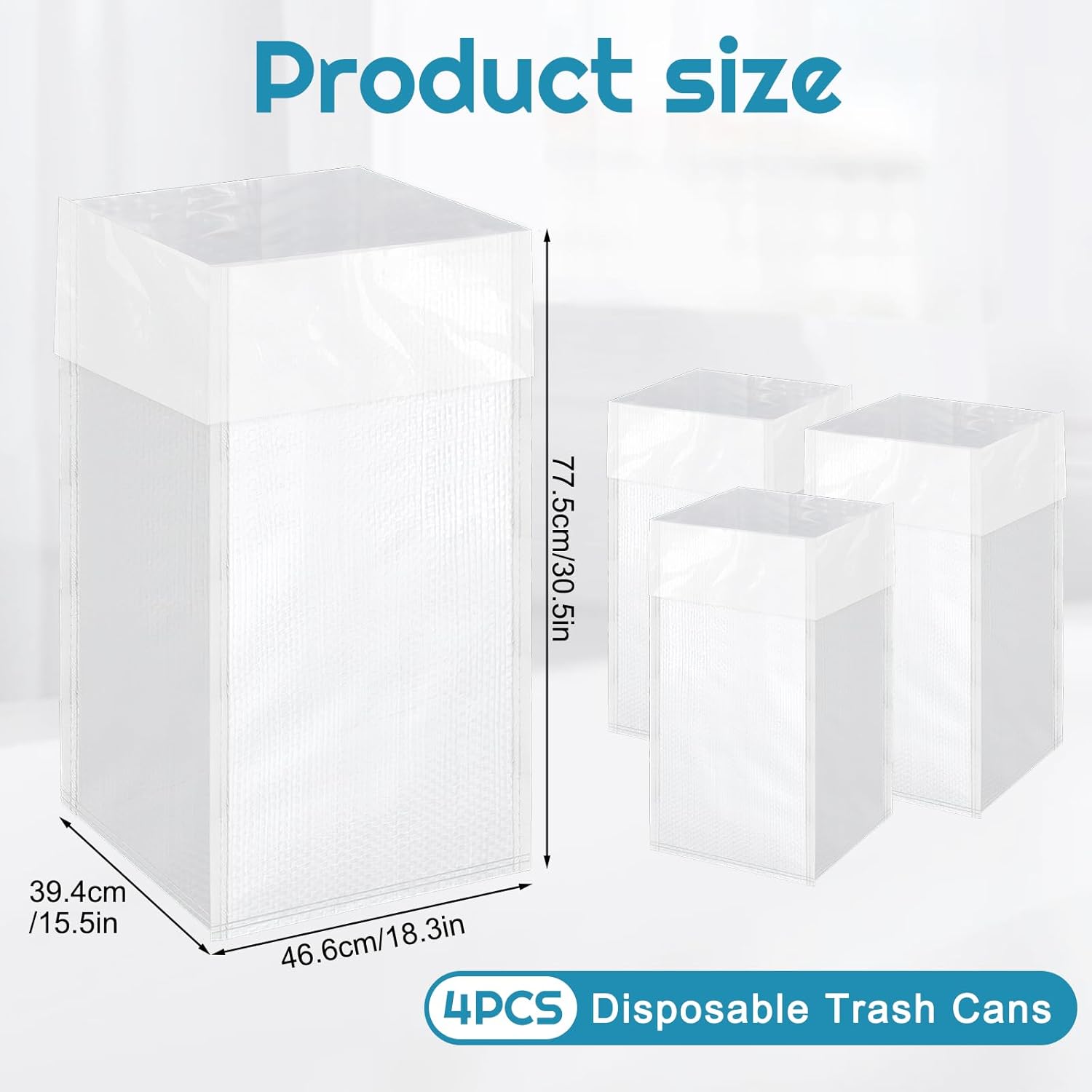 - Large Capacity: you will get 4pcs 30-gallon disposable trash cans measure 18.3" x 15.5" x 30.5" and are specifically designed for handling large volumes of waste at big gatherings. Simply set up the reusable garbage and recycling bins and dispose of them once you're done, saving you time and effort.