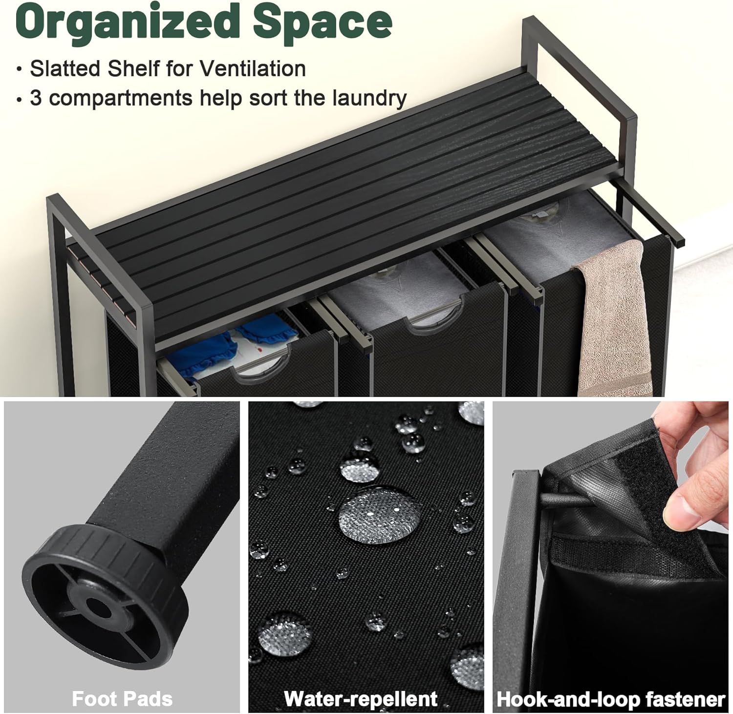 - Construction Design - With 4 adjustable feet, you will not have to worry about stability, and it is also adaptable to different spaces. Adjustable feet protect your floor from scratches. Strong steel frame and water-resistant wood top offer stable support. This laundry hamper comes with detailed instructions manual and all hardware needed, it is easy to assemble.