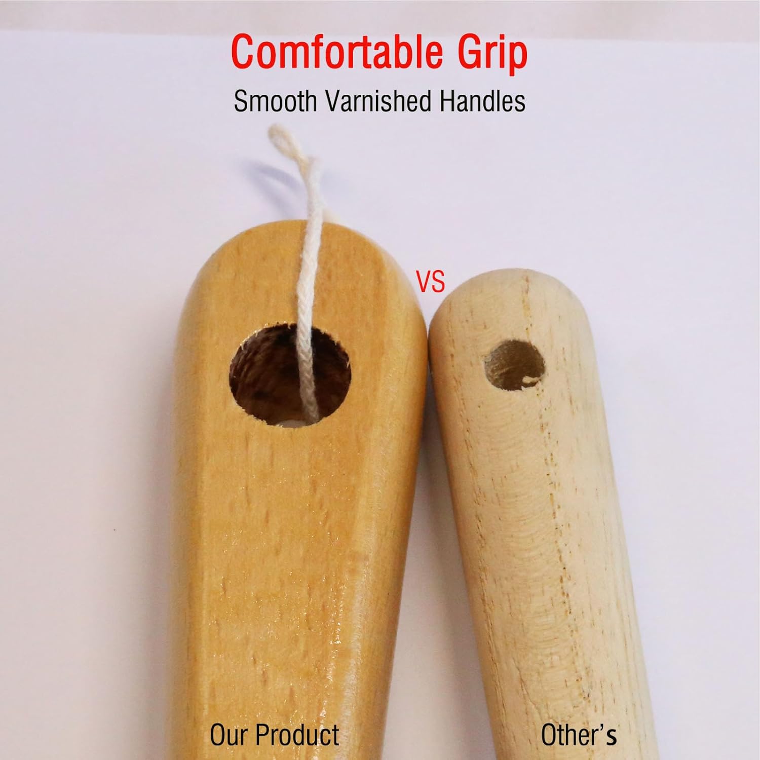 - [Durable and Moisture-Resistant Design]: The bamboo and wooden handles are evenly coated with varnish to prevent moisture absorption, cracking, and deformation, ensuring long-lasting durability in humid kitchen environments
