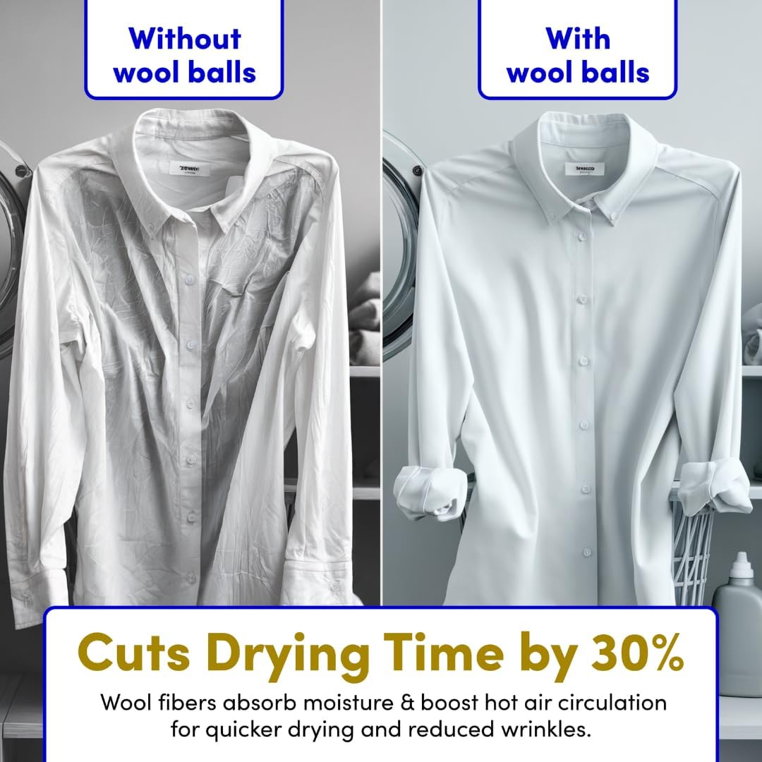 - Faster drying times: Our lint balls for dryer and every dryer ball reduce drying time by 25% to 40%, saving energy and cutting down on utility bills while ensuring your clothes are ready faster, making laundry more efficient