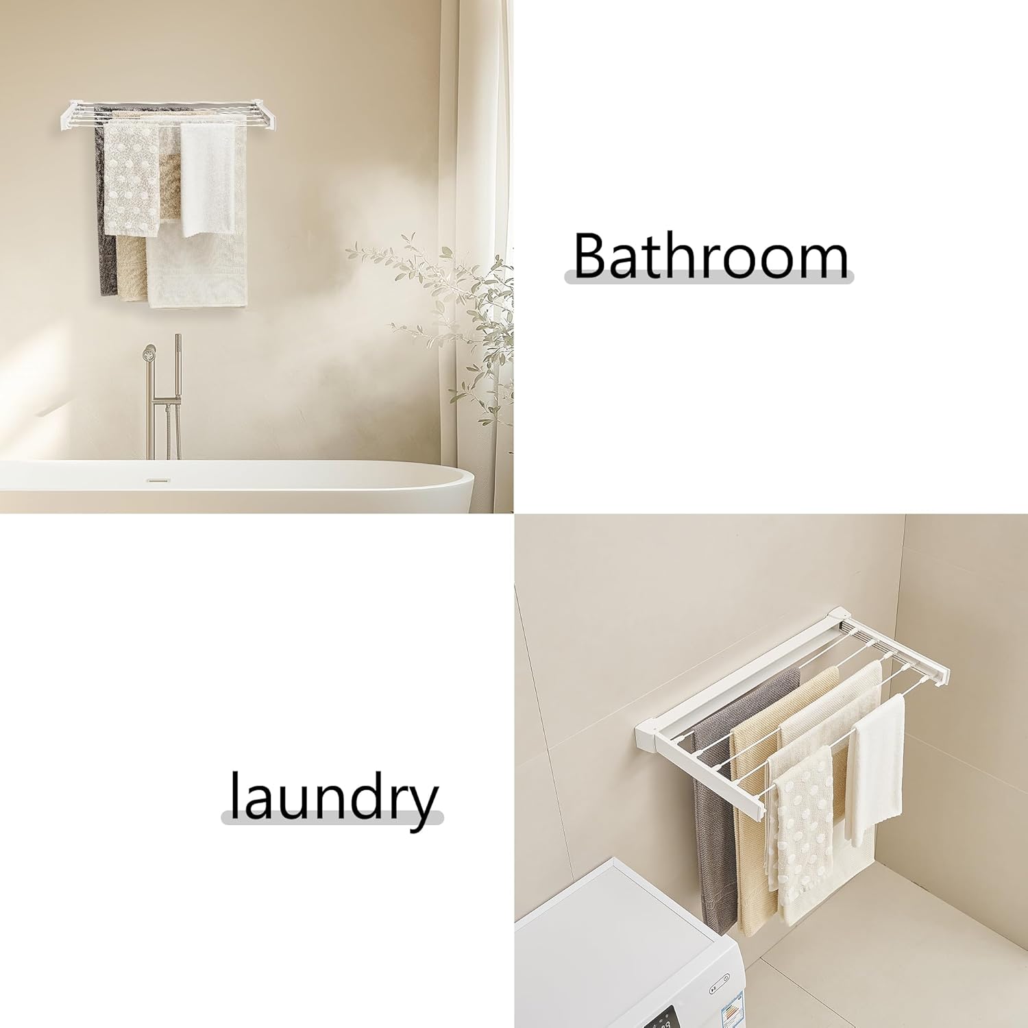 - Save Space: Folding for indoor or outdoor, this clothes drying rack is a great space saver. Compact, retractable wall-mounted design to maximize your limited space or add elegance to your spaces. Great for space constrained homes, apartments, hotels, laundry rooms. When not in use, fold it quickly to store until ready to use again
