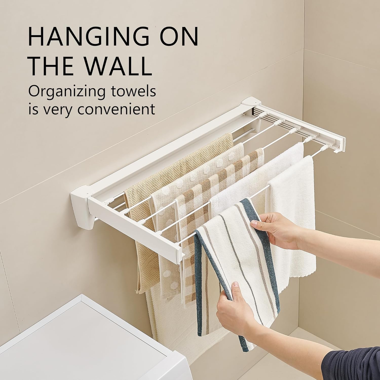 - Save Space: Folding for indoor or outdoor, this clothes drying rack is a great space saver. Compact, retractable wall-mounted design to maximize your limited space or add elegance to your spaces. Great for space constrained homes, apartments, hotels, laundry rooms. When not in use, fold it quickly to store until ready to use again