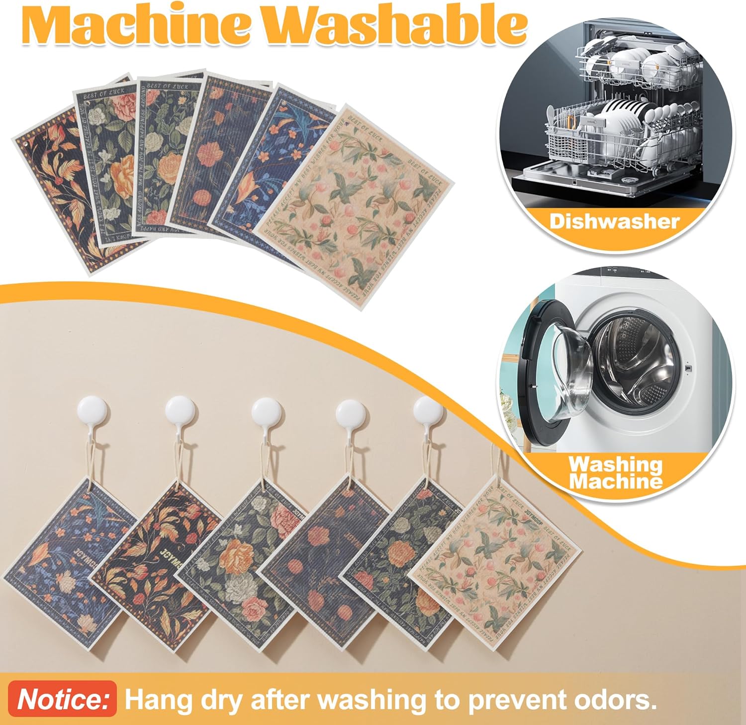- 𝐑𝐞𝐮𝐬𝐚𝐛𝐥𝐞 𝐃𝐢𝐬𝐡 𝐂𝐥𝐨𝐭𝐡𝐬 𝐒𝐞𝐭: 𝙏𝙝𝙞𝙨 𝙗𝙪𝙣𝙙𝙡𝙚 𝙞𝙣𝙘𝙡𝙪𝙙𝙚𝙨 6 𝙘𝙡𝙚𝙖𝙣𝙞𝙣𝙜 𝙘𝙡𝙤𝙩𝙝𝙨, 𝙚𝙖𝙘𝙝 𝙙𝙚𝙨𝙞𝙜𝙣𝙚𝙙 𝙛𝙤𝙧 𝙫𝙖𝙧𝙞𝙤𝙪𝙨 𝙝𝙤𝙪𝙨𝙚𝙝𝙤𝙡𝙙 𝙩𝙖𝙨𝙠𝙨. 𝙒𝙞𝙩𝙝 𝙖 𝙘𝙤𝙢𝙥𝙖𝙘𝙩 𝙨𝙞𝙯𝙚 𝙤𝙛 20 𝙭 17 𝙘𝙢 (7.9 𝙭 6.7 𝙞𝙣𝙘𝙝𝙚𝙨), 𝙩𝙝𝙚𝙮 𝙖𝙧𝙚 𝙥𝙚𝙧𝙛𝙚𝙘𝙩 𝙛𝙤𝙧 𝙙𝙖𝙞𝙡𝙮 𝙘𝙡𝙚𝙖𝙣𝙞𝙣𝙜 𝙖𝙣𝙙 𝙚𝙖𝙨𝙞𝙡𝙮 𝙨𝙩𝙤𝙧𝙚𝙙 𝙞𝙣 𝙮𝙤𝙪𝙧 𝙠𝙞𝙩𝙘𝙝𝙚𝙣 𝙙𝙧𝙖𝙬𝙚𝙧𝙨