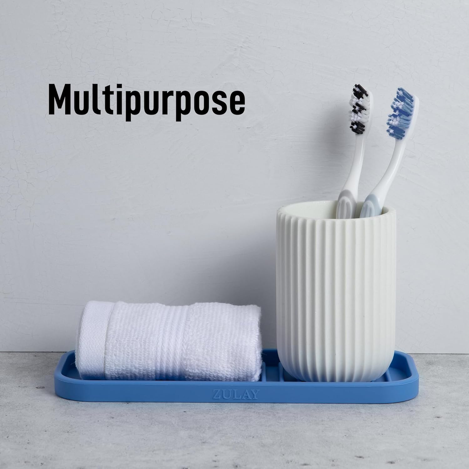 Zulay Kitchen (9x3.5) Silicone Sponge Holder for Kitchen Sink - Flexible Multipurpose Soap Tray Sponge Holder - Sink Organizer Tray for, Bathroom, Makeup, Trinkets & More (Provence Blue)