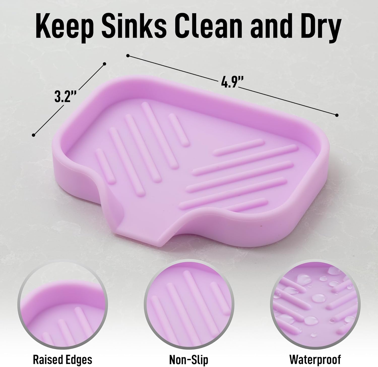 Zulay Kitchen Small Silicone Sponge Holder (4.9x3.3”) – Space-Saving Sink Organizer Tray for Sponge, Soap, Brush & More – Compact Non-Slip Dish for Kitchen & Bathroom (Lavender)