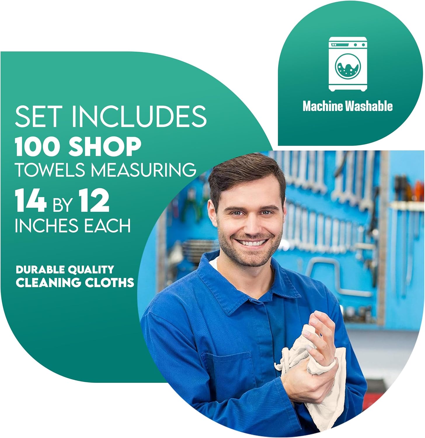 - Effortless Cleaning Power — Zuperia Shop towels include a Pack of 300 cotton shop towels measuring 14" x 12" Inches. They can quickly wipe away dirt, stains, and spills, effortlessly absorbing liquids, oils, and grease for efficient cleaning.