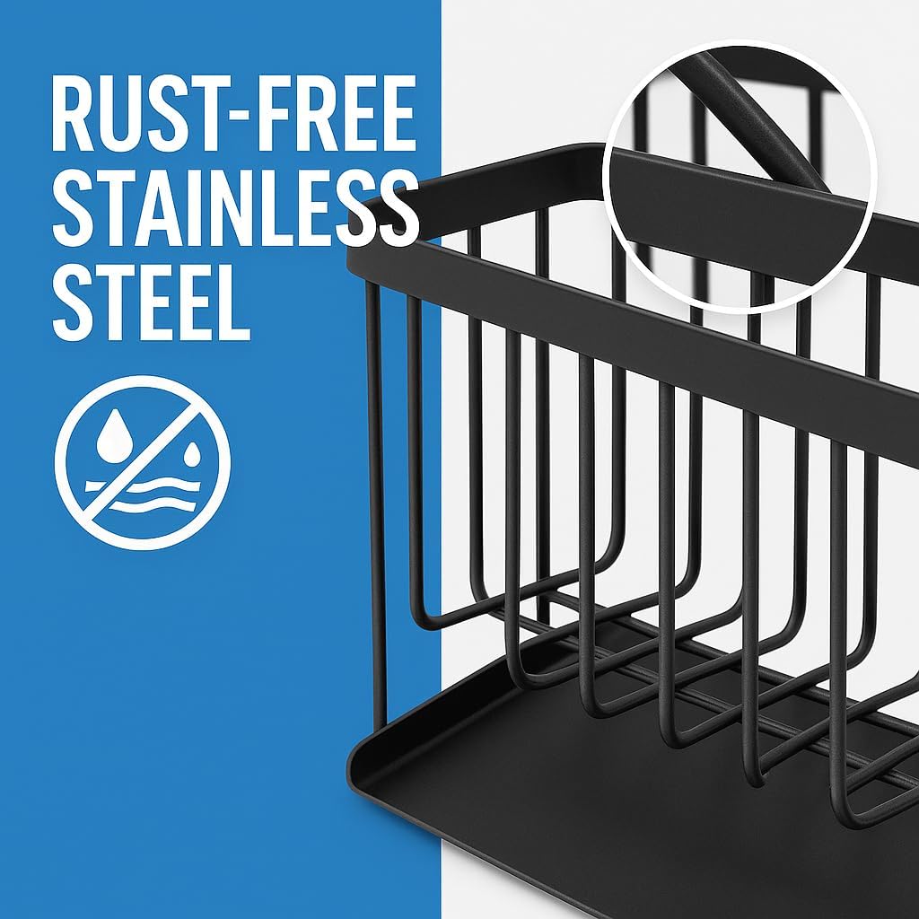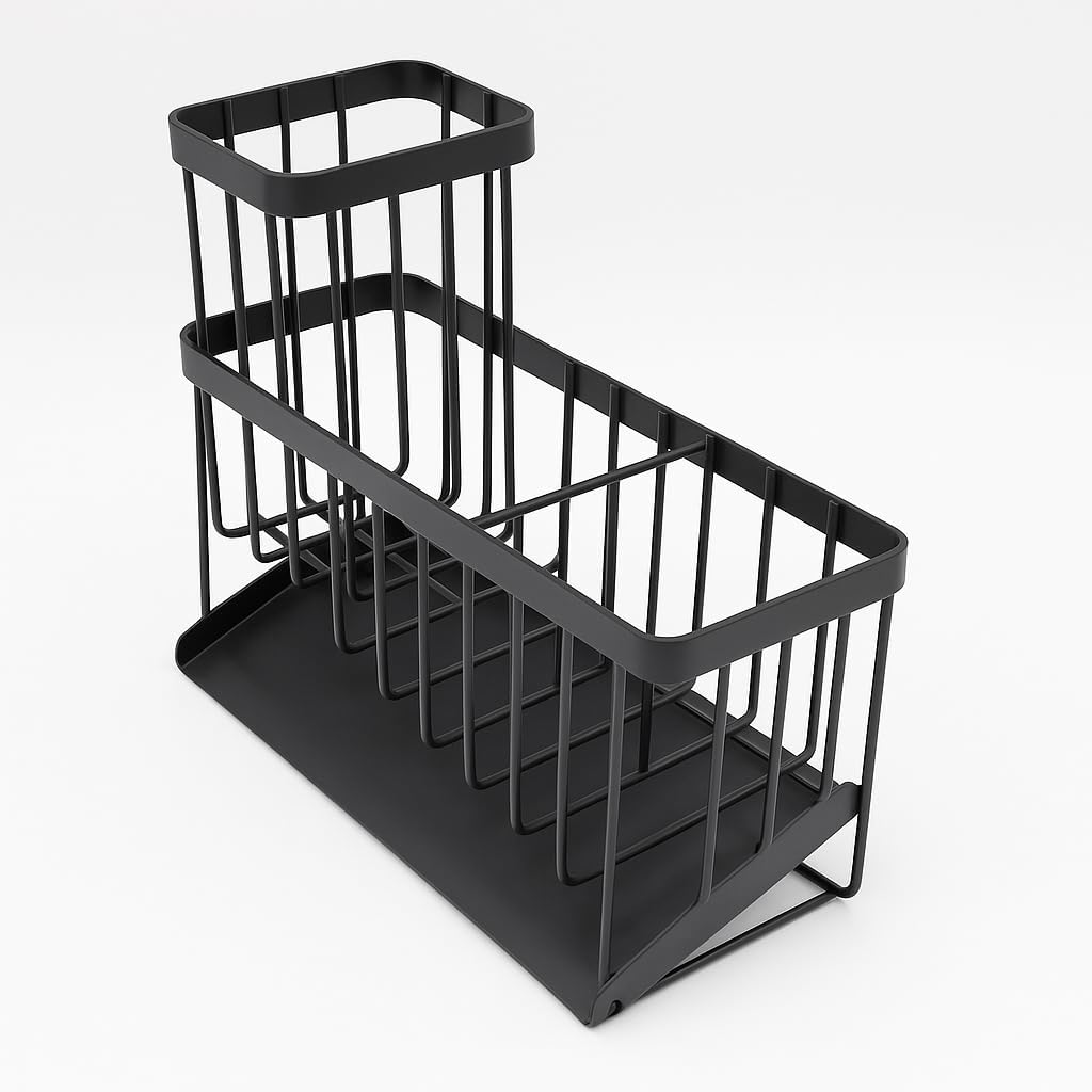 - Durable & Rustproof Material: Made from stainless steel with a black-coated finish, our sink sponge holder resists rust and corrosion. This kitchen sponge holder for sink is built to last, ensuring long-term durability and reliability.