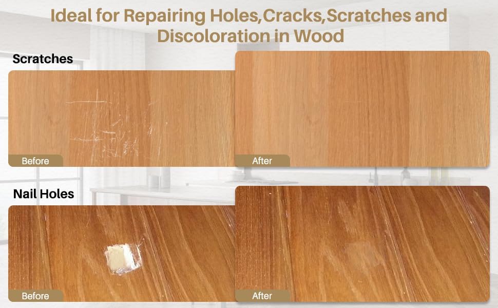 - MULTIPLE APPLICATIONS: Perfect for repairing scratches, scuffs, cracks, and nail holes on furniture, floors, doors, cabinets, and tables