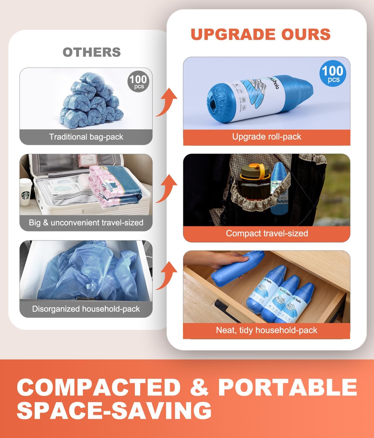 - Upgrade Roll-Pack Design: The shoe booties disposable are portable & space-saving; Featuring a perforated line for effortless separation, you can access shoe protector covers quickly; Carry shoe covers disposable with you for instant use in any situation