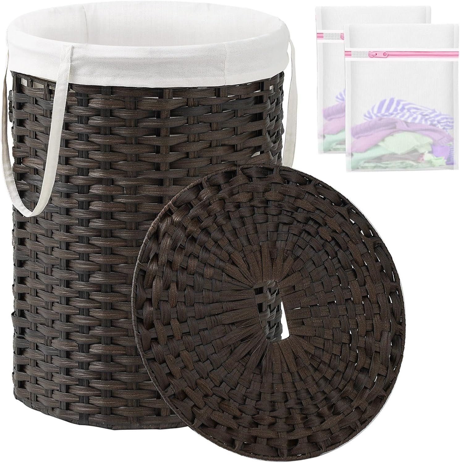 - Simple and Stylish: The wicker storage basket is hand-woven from synthetic rattan material, and the circular appearance of the woven laundry hamper with lid and the free-standing lining bag make it easier to store and transport dirty clothes