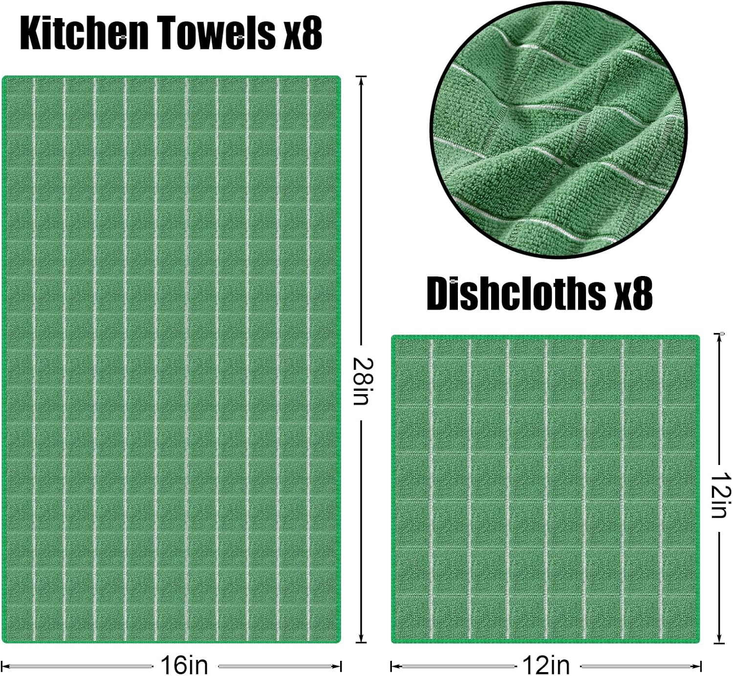 Homaxy Microfiber Kitchen Towels and Dishcloths Set, 12 Pack Soft and Absorbent Dish Hand Towels Bulk, 28 x 16 Inch & 12 x 12 Inch Quick Drying Rags for Washing Dishes, Grass Green