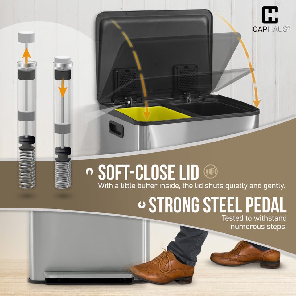 - Efficient Waste Separation: Our dual trash can has separate bins for trash and recycling, with removable bins for easy maintenance; with a capacity 25L + 25L (2 x 6.6 Gallon), it saves space and suits both residential and commercial use