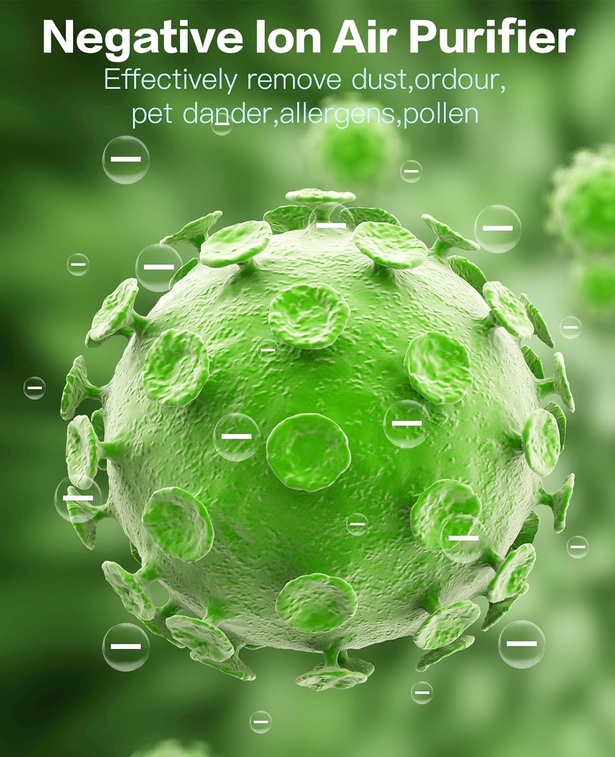 - 【Enhanced Powerful Filtration Speed】-The home air ionizers has adapted latest negative ion technology,more effectively help to clean pet smells,other odors from bedroom,bathroom,dining room,living room,and kitchen
