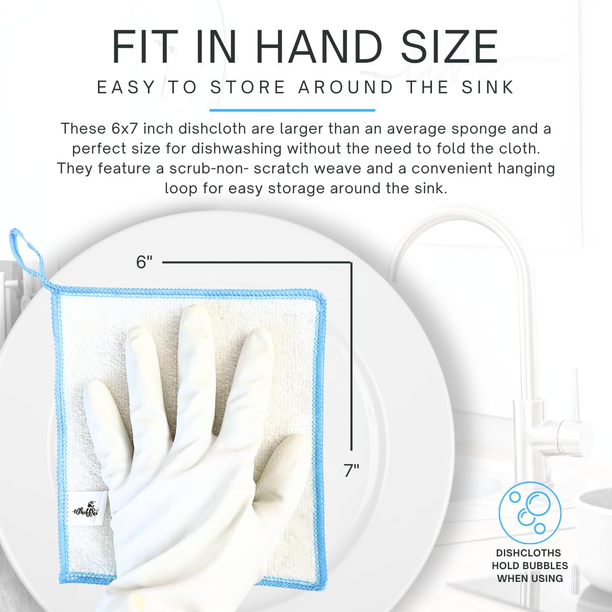 - DESIGNED FOR DISHES β 6x7 inch bamboo-rayon dishcloths hold plenty of soap and water, yet wring out easily with one hand. Highly absorbent to reduce drips and splashes.