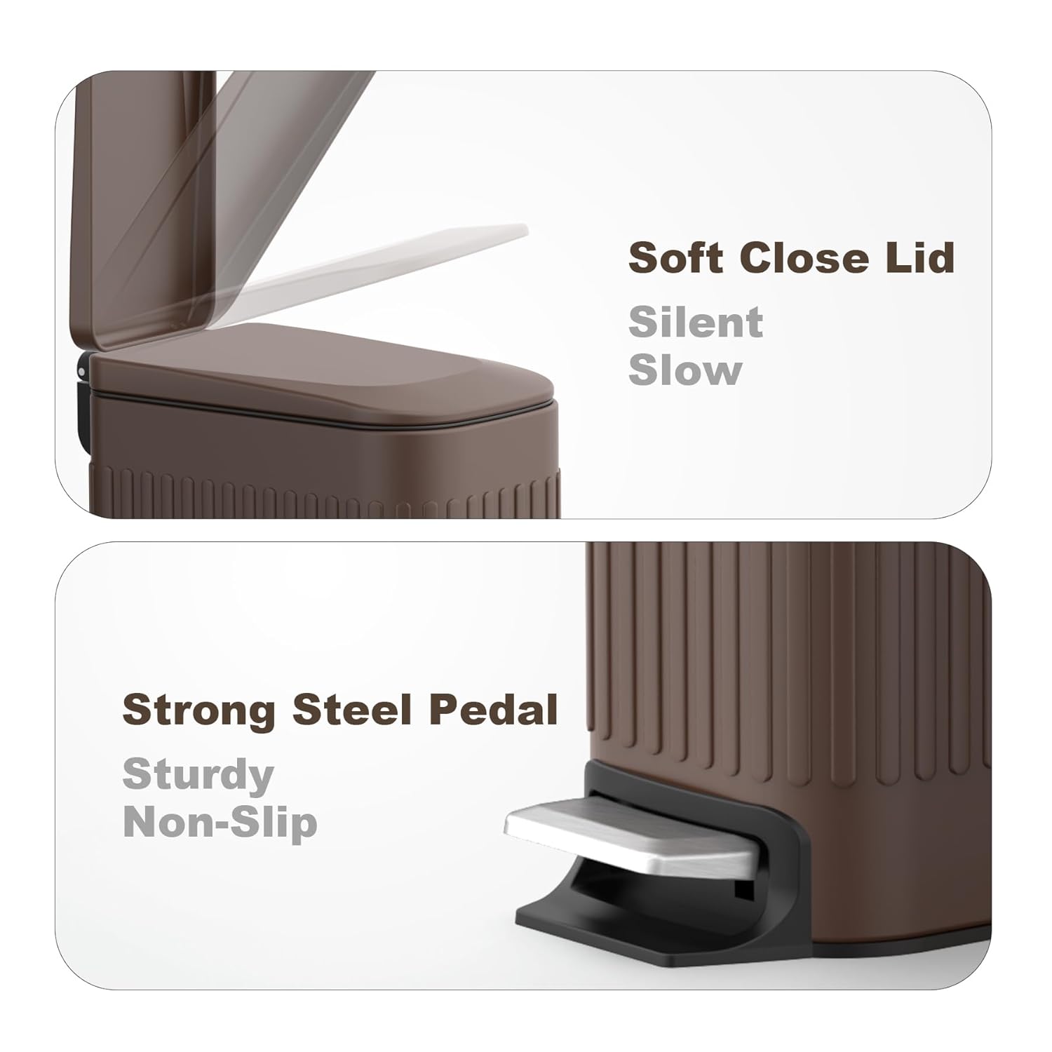 TrashAid Slim Bathroom Trash Can with Lid Soft Close, 6 Liter/1.6 Gallon Stainless Steel Small Garbage Can with Removable Inner Bucket, Step Pedal, Slim Wastebasket for Toilet, Office, Bedroom, Brown