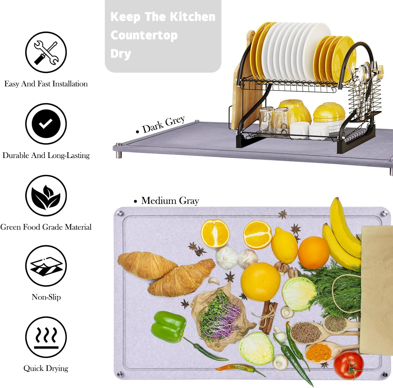 - 【 Versatile Use & Modern Design 】Not just a quick dish drying stone mat for kitchen sink, it also doubles as a heat-proof mat, or pet feeding mat. Its sleek, natural design makes it a practical and thoughtful gift for friends or family who value a clean, organized kitchen.Tips:Avoid spilling dark liquids like coffee or red wine to prevent staining