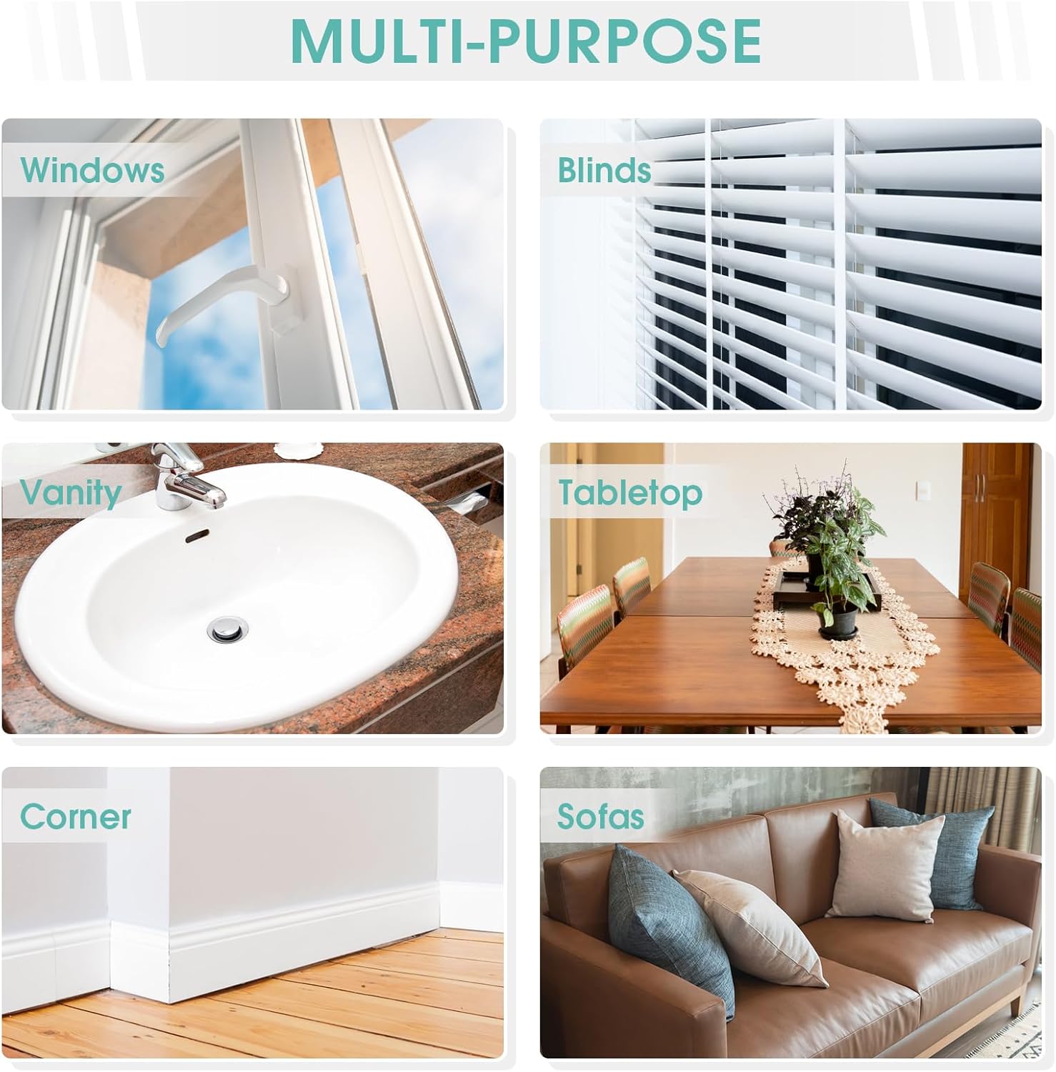 - Multi-purpose: This sponge is ideal for cleaning blinds, baseboards, taps, window track recesses, railings, mirrors, hair, glass, and ceiling fan blades.