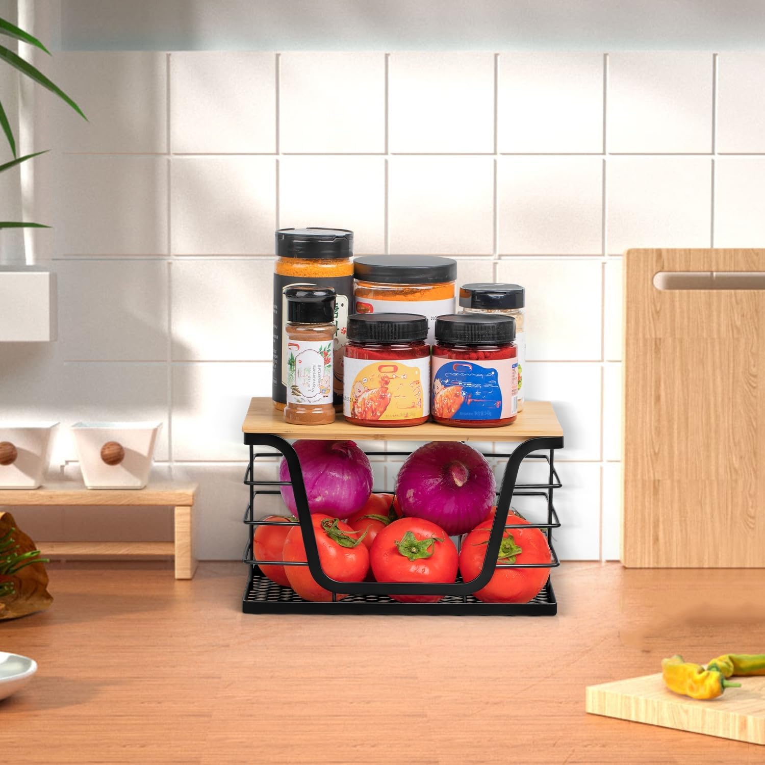 - 【Multi-Purpose Basket】The metal frame standard basket with bamboo top and mesh bottom, it is not only be used as a trash bag holder dispenser, it is also can store potatoes, onions, snacks on the pantry, also suitable for under the sink on the kitchen and bathroom, laundry room organization and storage