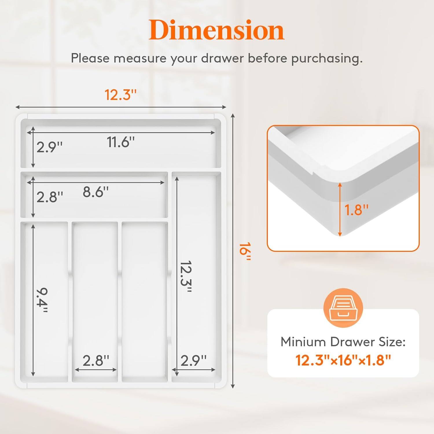 - Robust and Safe: This kitchen drawer organizer is crafted from premium PP material, BPA-free and built to last. It ensures your silverware is stored in a healthy, safe environment for worry-free use