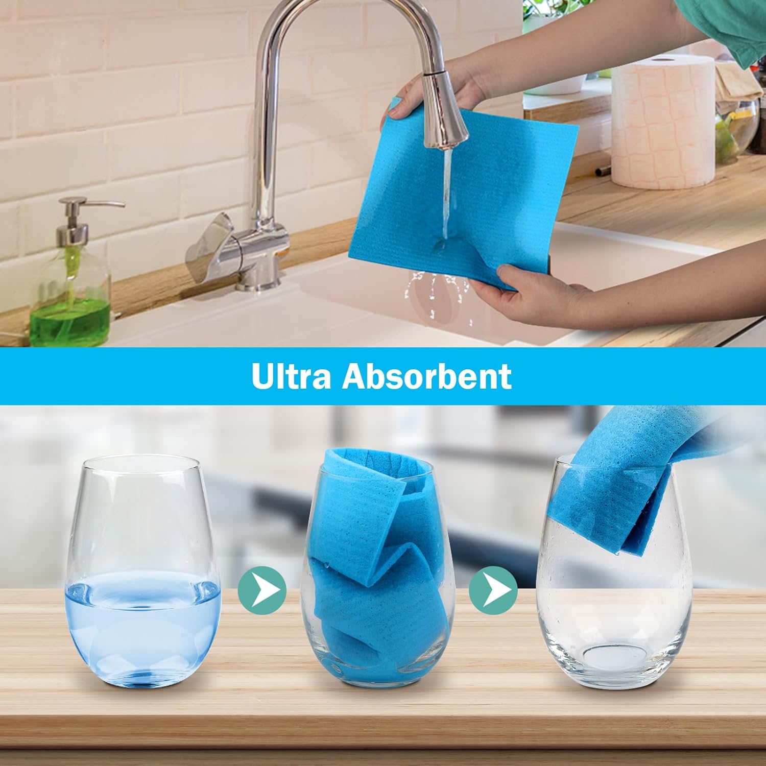 - Super Absorbency: Crafted from wood pulp fibers, these dishcloths soak up spills and moisture in seconds. No more soggy mess, just quick, efficient cleanup for kitchens, bathrooms, and beyond