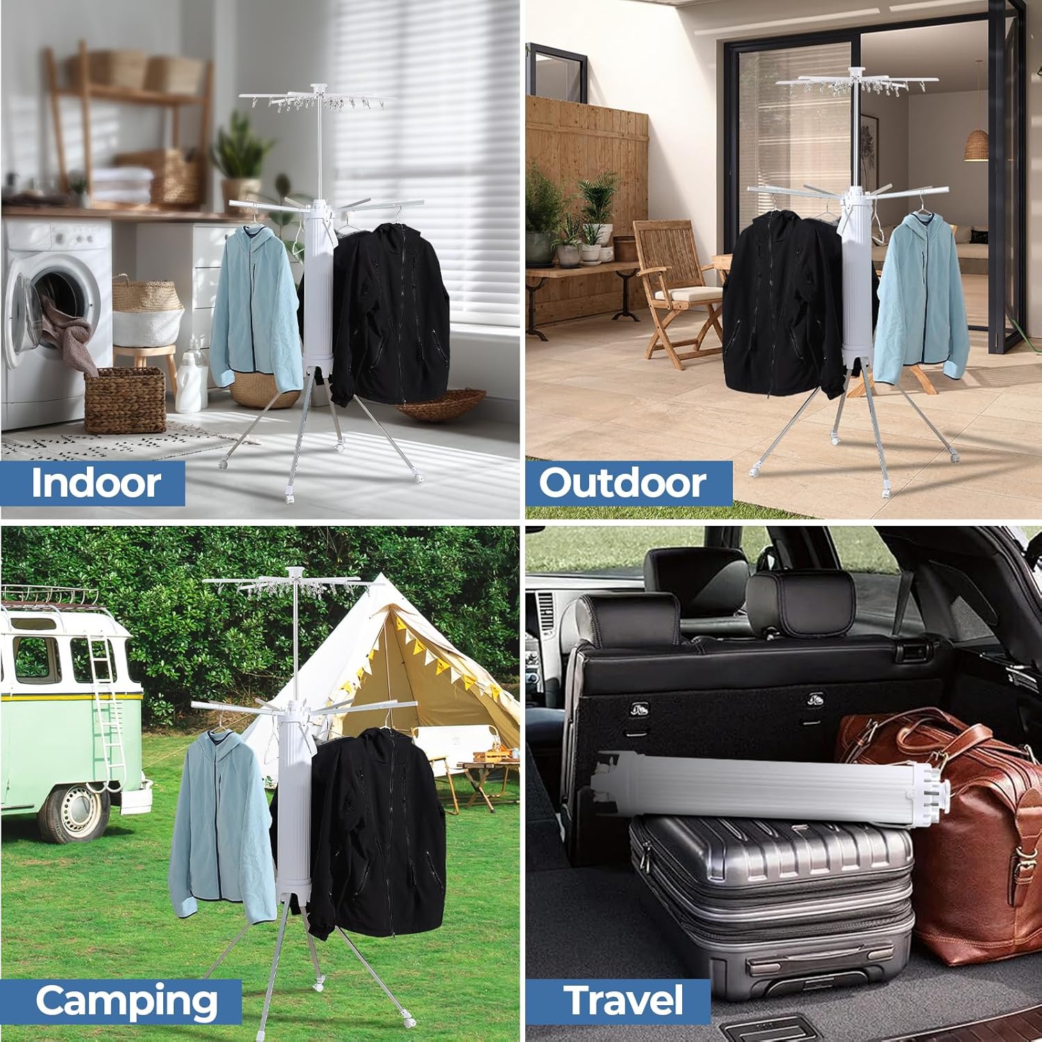 - 【Versatile Usage】Perfect for various drying needs, the upper section accommodates small items like undergarments and socks, while the lower level is designed for shirts, coats, jeans, and jackets. Suited for families or singles in apartments, hotels, balconies, bedrooms, bathrooms, and laundry rooms.