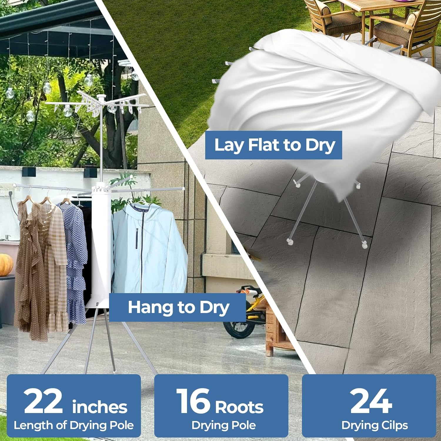 - 【360°Rotating Arms】This portable clothes drying rack allows you to adjust and access drying rods as needed. With a 360°rotation, it effectively dries up to 27 garments while conveniently fitting against walls or into corners, optimizing your space usage.