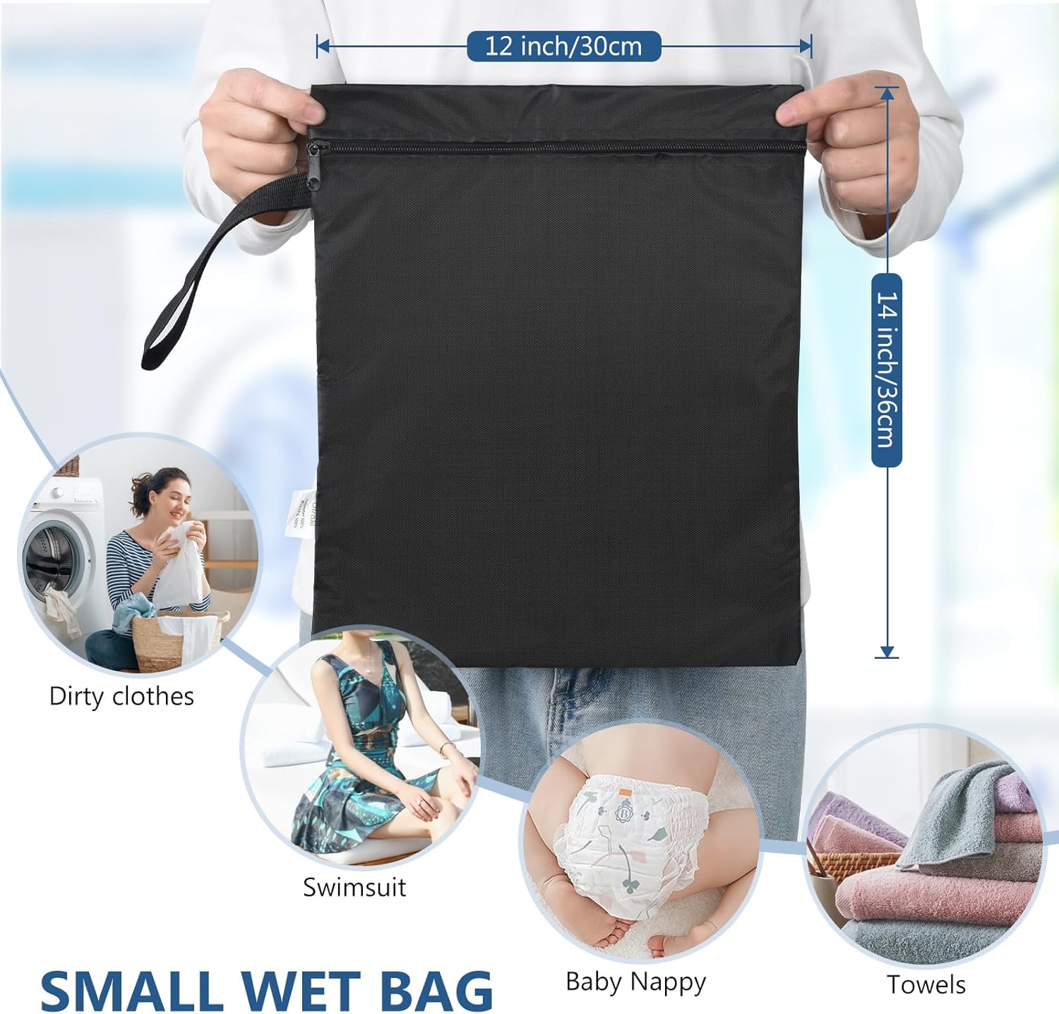 - 【Small Size】Package includes 2pcs 12 × 14 inch/30 × 36cm black wet laundry bags. Our wet laundry bag can easily accommodate a daily change of wet clothes, towels, diapers or bathing suits. The large opening and smooth zipper makes it easy to get your items in and out.