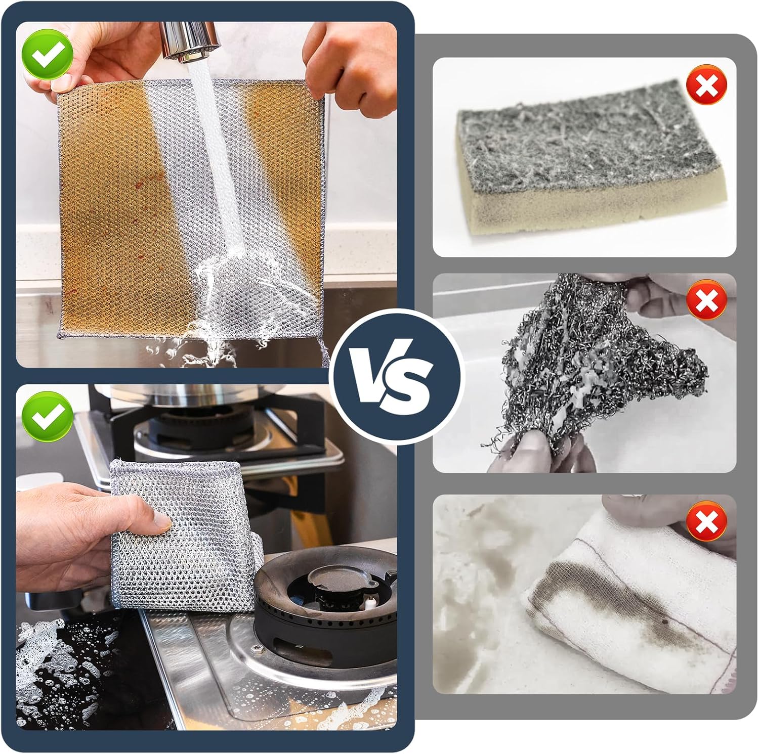 Navona 12 Pcs New Upgrade Steel Wire Dishcloth,Dry and Wet Dual-Use Steel Wire Cleaning Cloth,Powerful Cleaning Non-Scratch Wire Dishcloth Rag for Cookware, Sinks, Dishes, Stove Tops