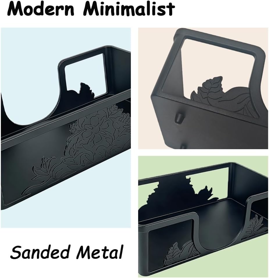 Metal Napkin Holder for Bathroom and Kitchen - Black Floral Design Disposable Hand Towel Holder Tray, Guest Towel Organizer for Countertop, Paper Napkin and Towel Dispenser(Black)