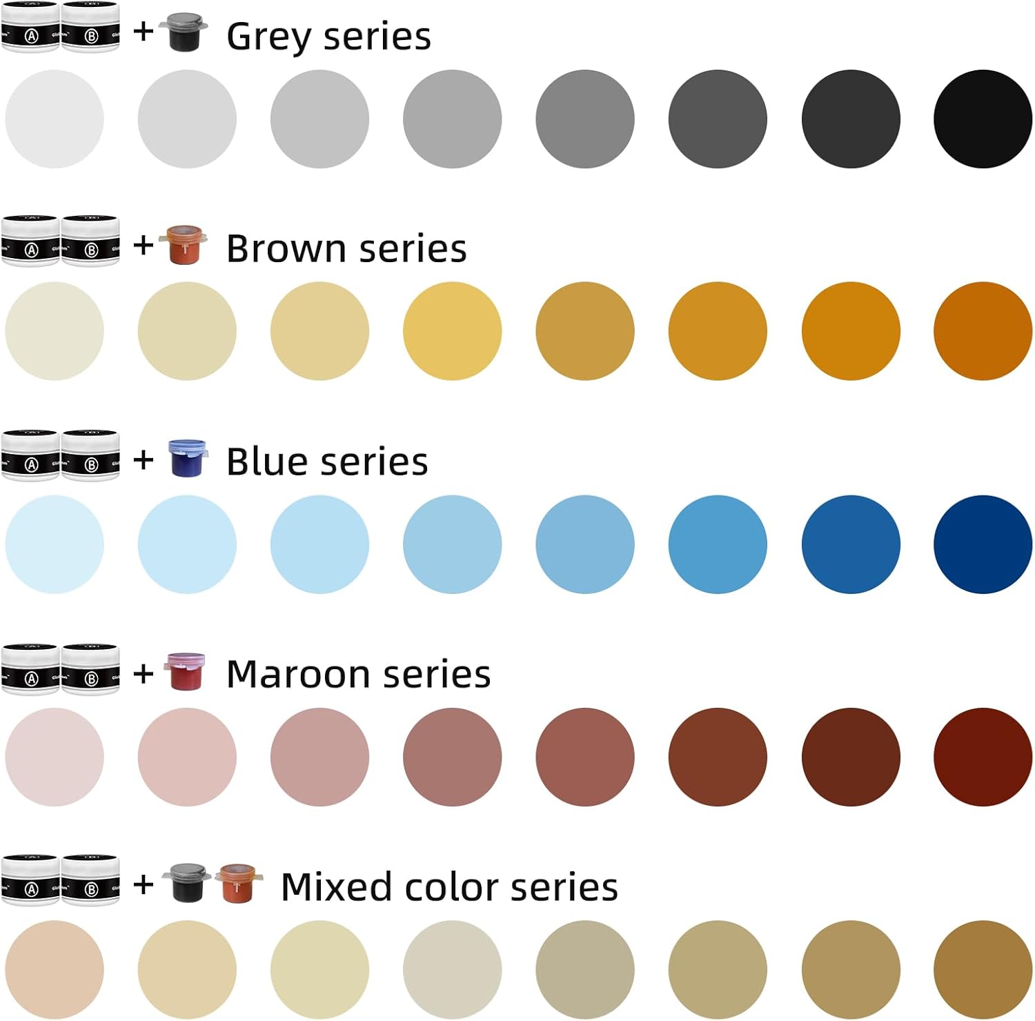 - Perfect Color Match - You can make a lot of different colors with the color gels we provide: white, beige, arctic, cream, biscuit, almond, linen, brown, bone, hourglass, ice gray, cashmere, thunder gray, black, blue, maroon, red etc. Our products are repaired without traces. You don't need to add other paint on the surface.