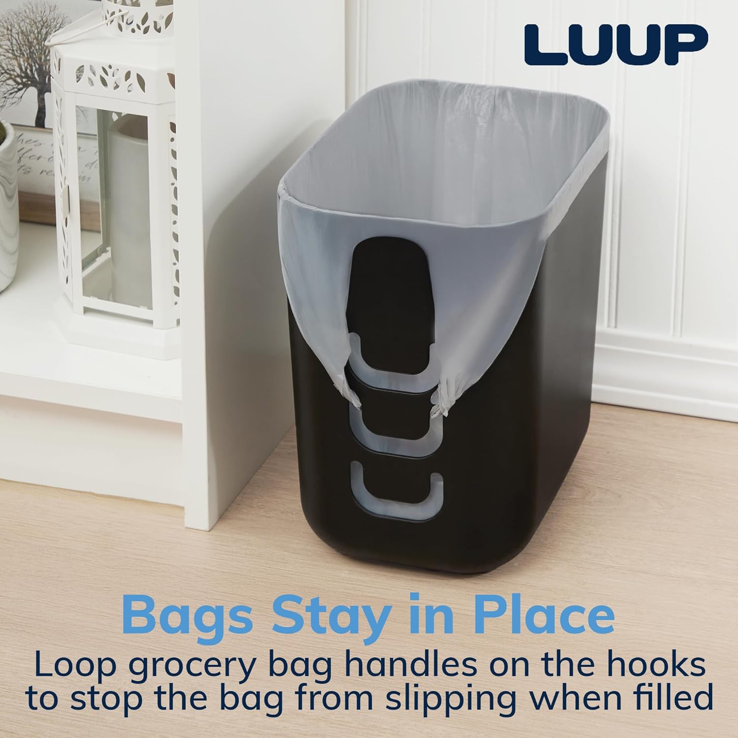 STORi Luup Bathroom Wastebasket, Secure Grocery Bags, Plastic Garbage Container for Vanity, Laundry Room, Kitchen, Office, 2.5 Gallon, Black, Made in USA