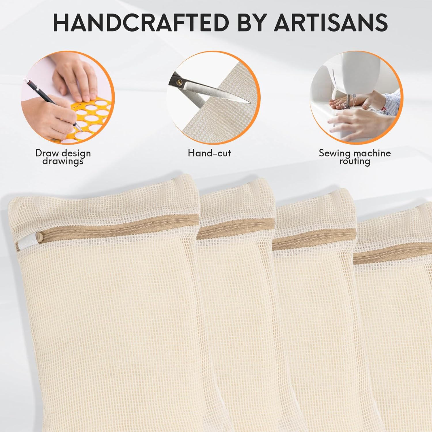 - ăCraftsmen's exquisite skills ăCotton mesh laundry bags designed and sewn by skilled craftsmen for washing intimate apparel are carefully cut and sewn by skilled craftsmen with fine threads. These laundry bags are sewn with three stitches every 1cm, making the bags more delicate and sturdy. Meticulous craftsmanship and strict quality control ensure that every product is made to perfection.