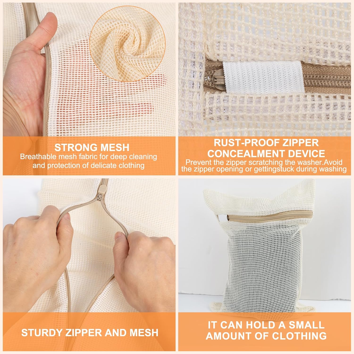 - ăBreathable Mesh, Special ZipperăBreathable mesh allows water to flow in and out smoothly, making it easy for the washer to deep clean clothes without wrinkling. The rust-resistant and durable zipper comes with a rubber band cover. You will say goodbye to zipper scratches on the washer and the opening of the laundry bag during the washing process.
