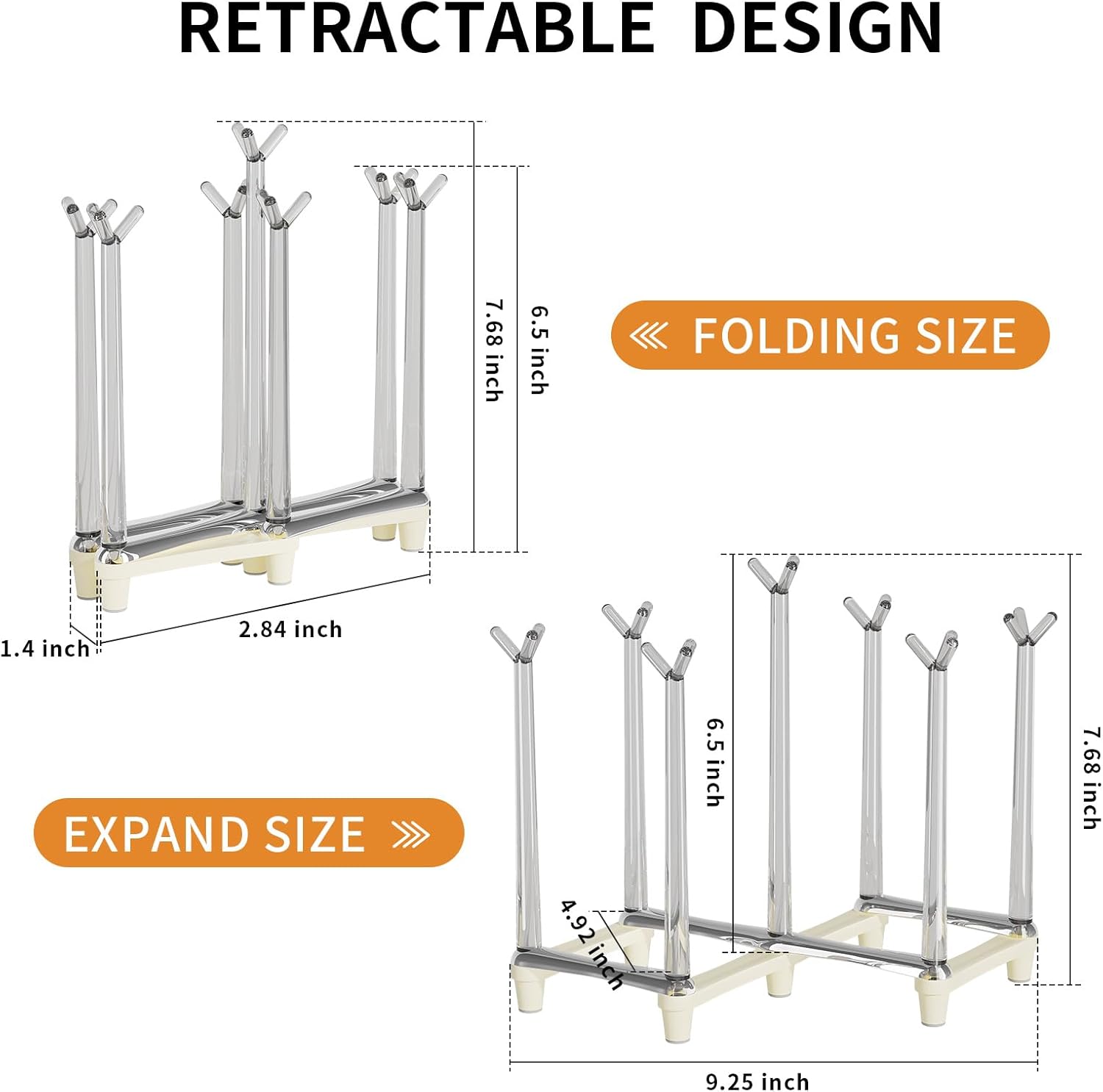 - PREMIUM MATERIAL - Foldable cups drying rack made of high quality PP material, durable. Comes with an absorbent cloth. Protect your cutlery from scratches.