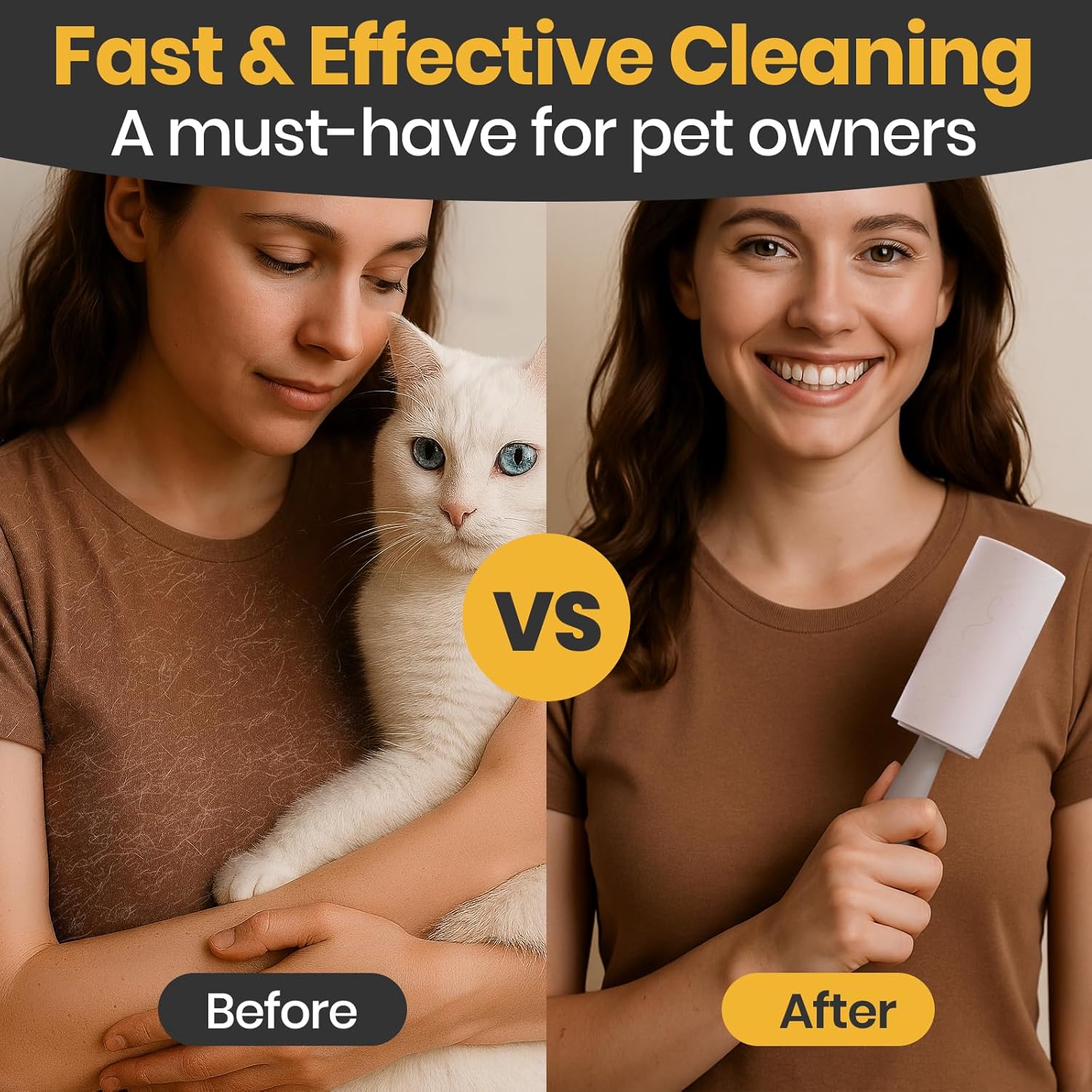 - Ergonomic Comfort Grip β Smooth 360Β° Rolling: Designed with a contoured, non-slip handle and a 360Β° rotating roller head, our pet lovers lint roller glides effortlessly across all surfaces. Clean faster with less wrist strain with these strong lint Rollers for pet hair extra sticky.