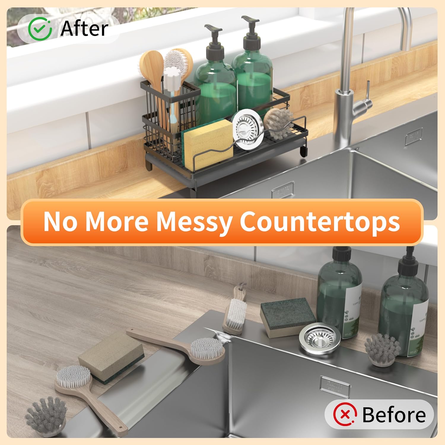 - 【Premium Stainless Steel】- Our kitchen sink organizer made from Premium stainless steel with a protective coating. this kitchen sink caddy resists rust and damage, ensuring long-term durability in wet environments.