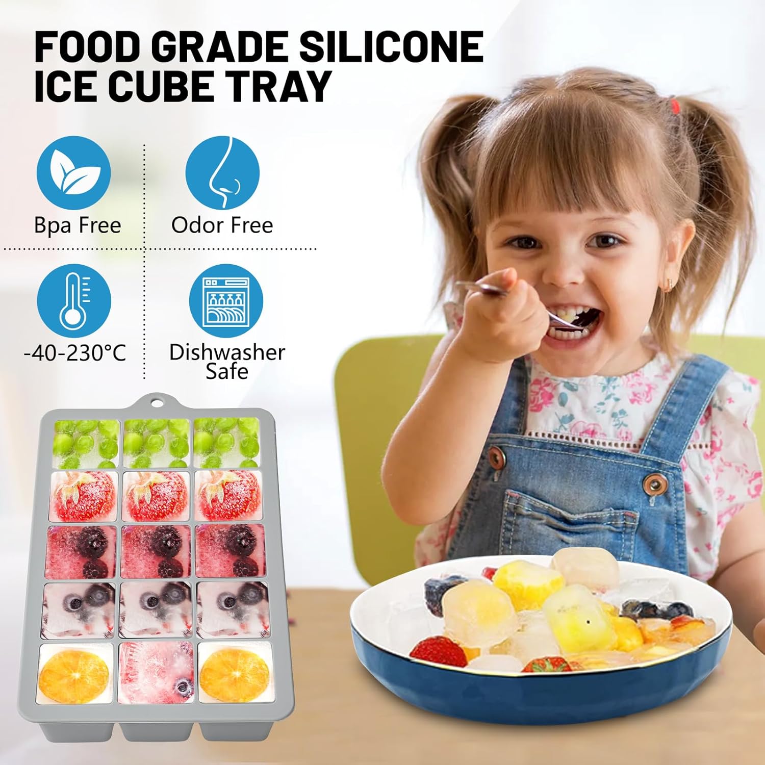 Silicone Ice Cube Trays 3Packs, Easy Release Ice Cube Molds with Lid, Freezer Stackable Ice Maker for Whiskey, Baby Food, BPA Free (Blue+Grey+Pink)