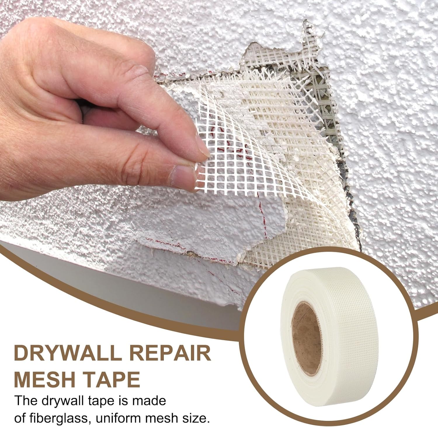 - Color: White; Hole Diameter: 12 Mesh; Total Size: 50 m x 5 cm / 164.04 Ft x 1.97 inch (LxW); Packing List: 1 Pcs x Drywall Repair Mesh Tape