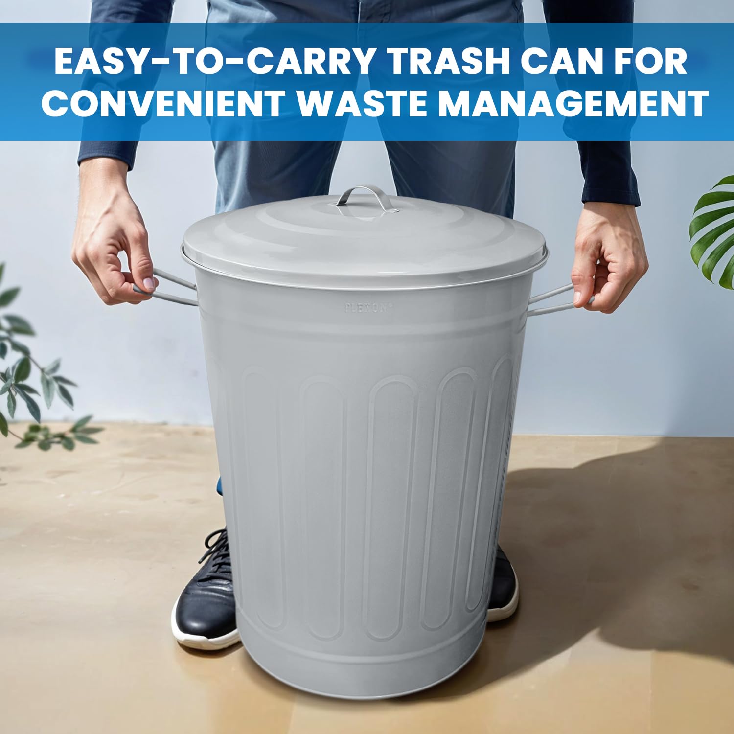- Durable Construction: The Plexon 13-gallon galvanized steel trash can with lid is made from heavy-duty materials, perfect as an outdoor trash can with lid or a farmhouse garbage can for your kitchen, garage, or home.