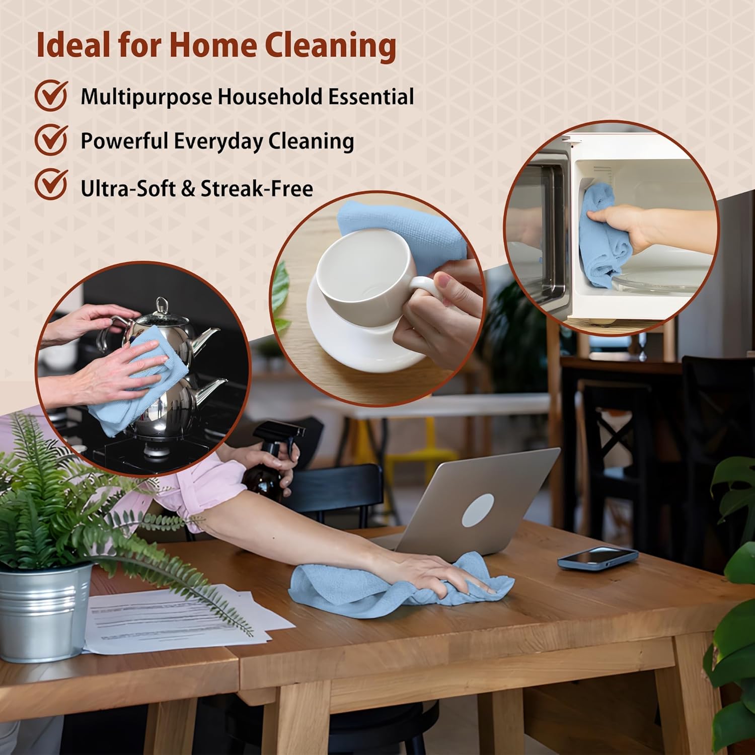 - Microfiber cleaning cloths 11.81x11.81 Inches; provide a soft texture gentle, ideal for cleaning, kitchens, garages, workshops, glass, mirrors, windows and stainless steel without leaving residue.
