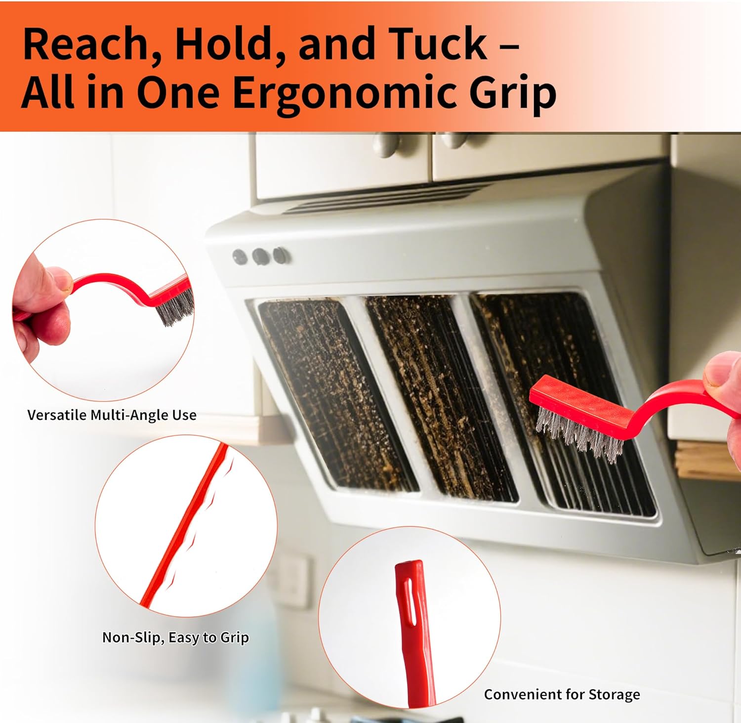 - 【Ergonomic Design for Comfort and Control】 Both our plastic razor blade scraper and wire brushes feature ergonomic designs that enhance usability. The plastic scraper tool has anti-slip handles for a comfortable grip, making cleaning tasks easier. Meanwhile, the small wire brushes come with soft rubber-covered handles and water chestnut grips for added comfort. Plus, their perforated ends make them easy to organize and store.