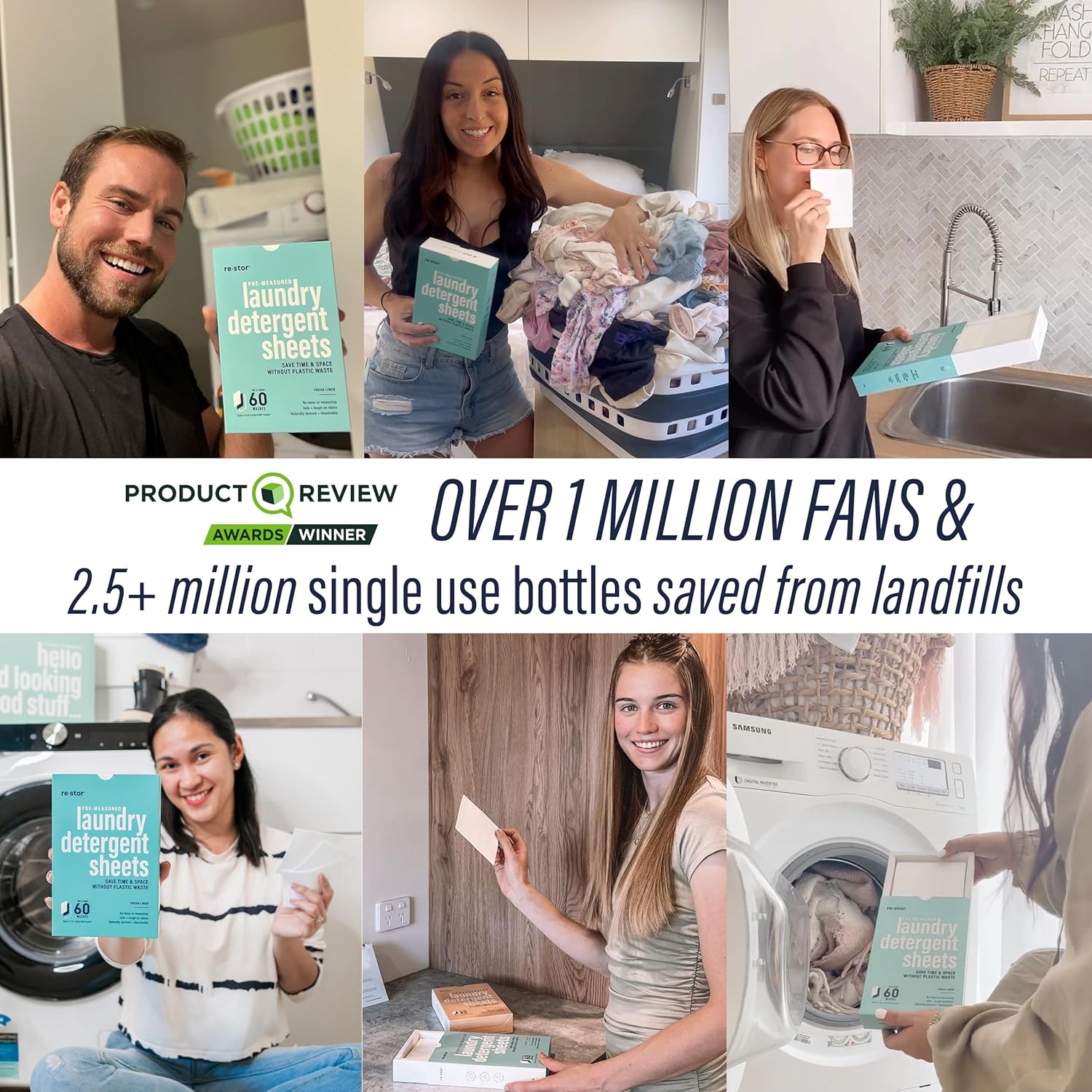 - PROVEN TO FIGHT STAINS BETTER THAN OTHER BRANDS: Enhance your laundry routine with Restor Laundry Detergent Sheets that have been independently tested to remove common household stains better than the leading Laundry Sheet brand. Each ultra-concentrated, dissolvable sheet tackles stains, odors, and buildup with 94% naturally derived ingredients, delivering a powerful clean, without compromise