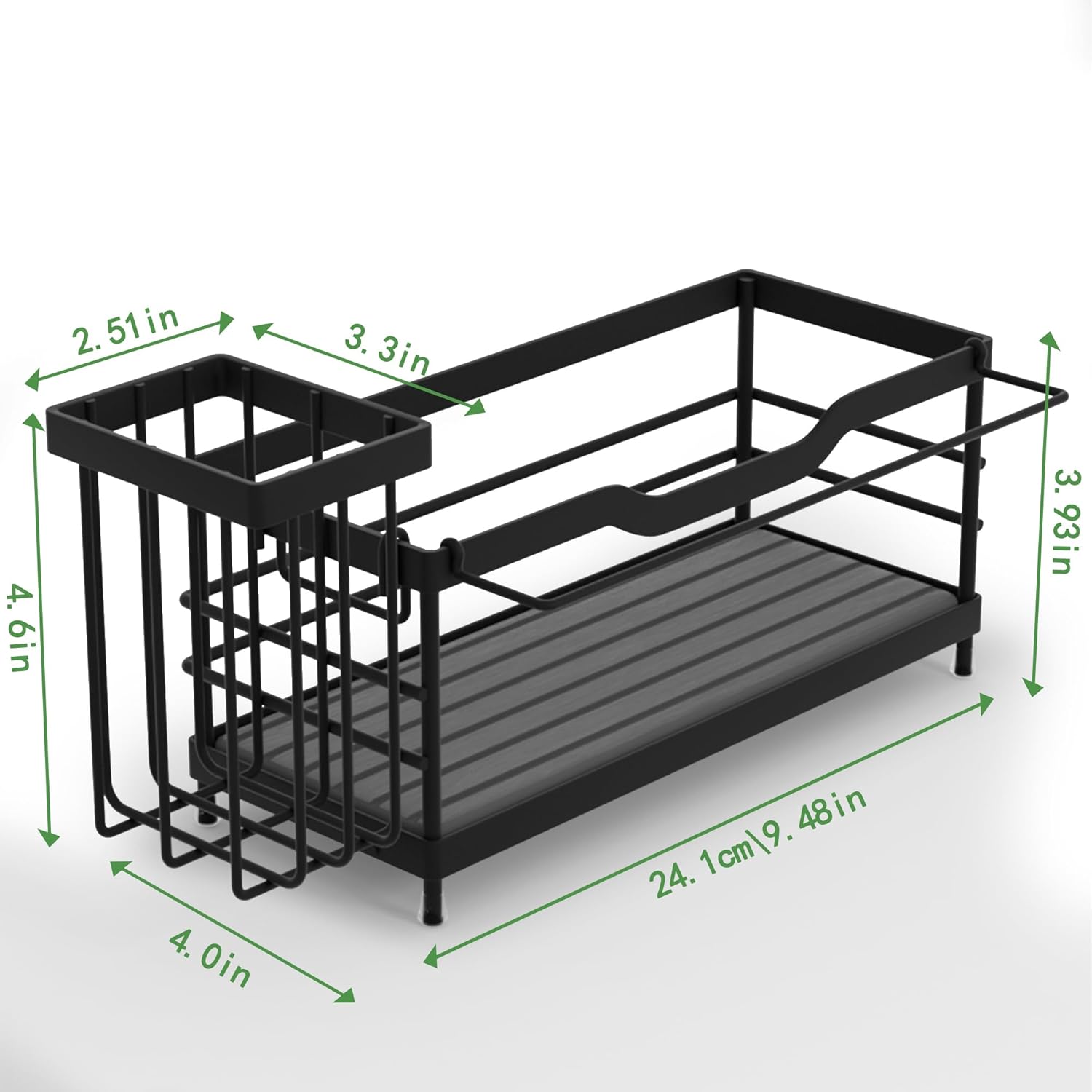 Sponge Holder for Kitchen Sink,Sink Caddy Organizer With Stone Drying Tray, Stainless Steel Kitchen Countertop Organizer for Sponge Soap Dispenser Black